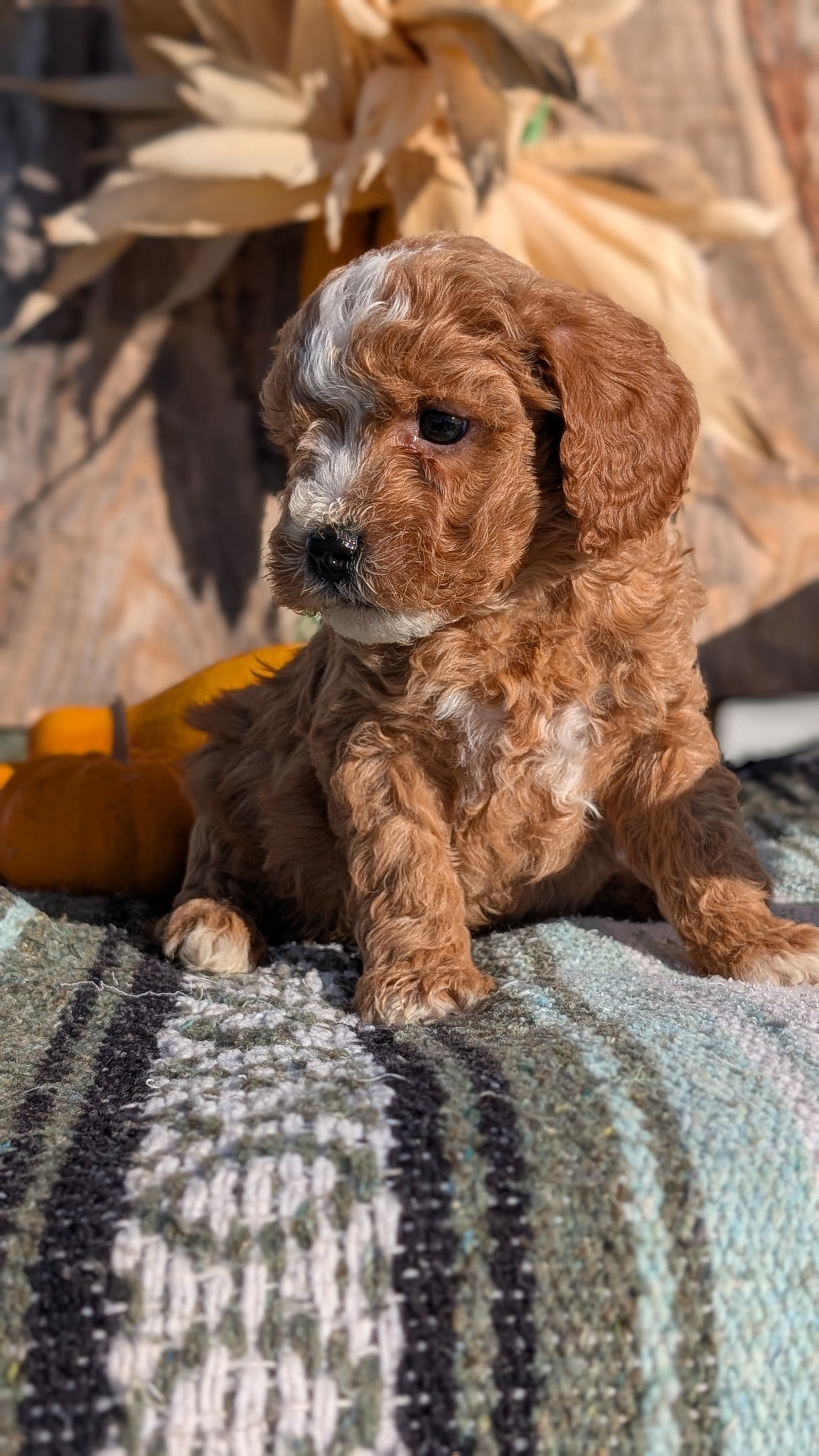Sweet, lively CavaPoo pups; hypoallergenic and great with kids. Love exploring, playing with litter mates; will fit in well in an indoor, active lifestyle. Expected to be 12-14 pounds full grown and stand just over a foot tall.