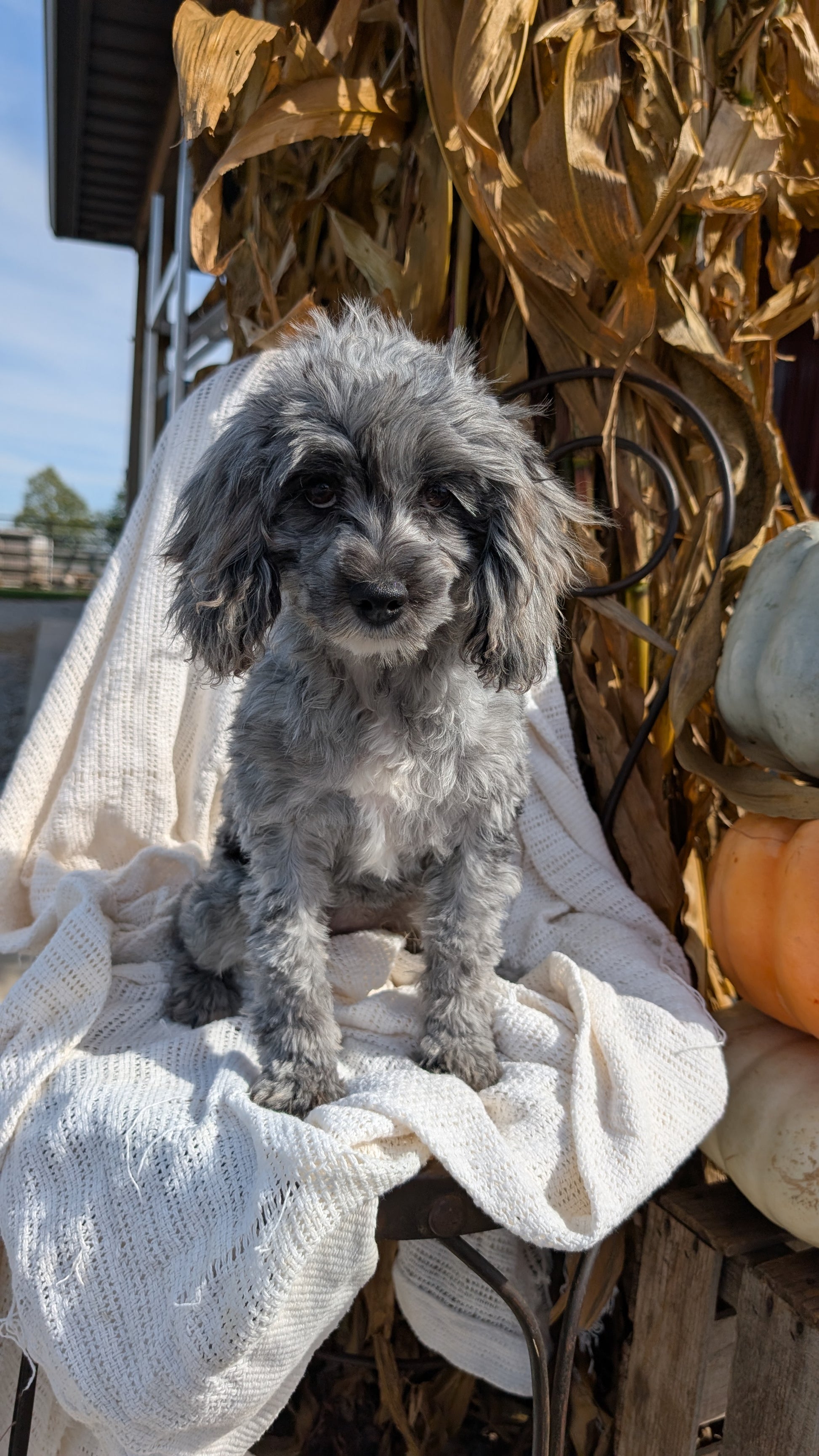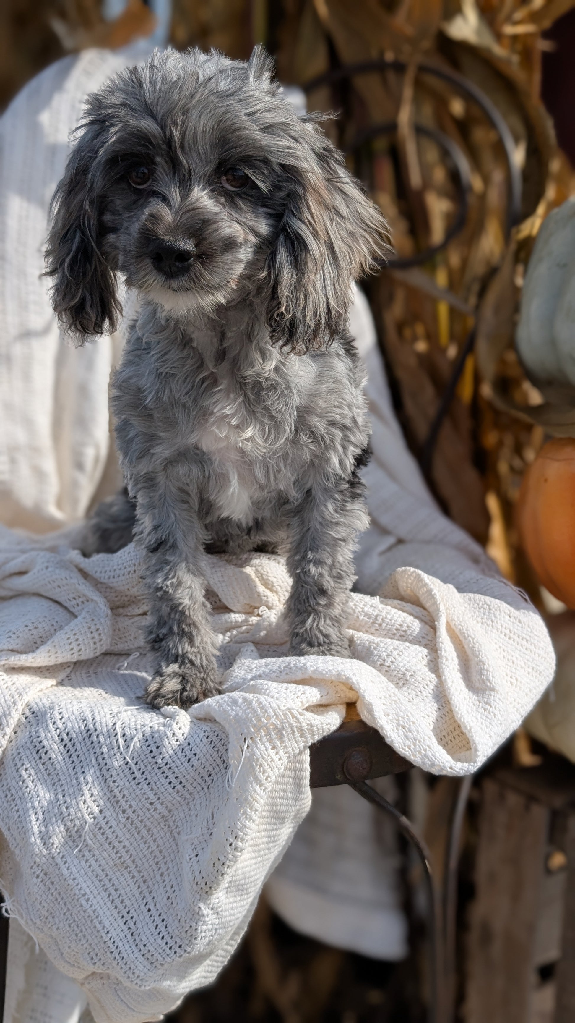 Adorable, sweet Merle CockaPoo female, great with other dogs and vet check cleared. Expected to be just over 10 pounds full grown, hypoallergenic and non-shedding. Loves exploring outdoors, playing with toys and belly rubs. Up to date on vaccinations/dewormers and will come with Trupanion Pet Insurance 30 Day Free Trial. In-person visits, video chat available. Local pickup in northern Indiana, public meetup and shipping/delivery available anywhere within the contiguous United States.