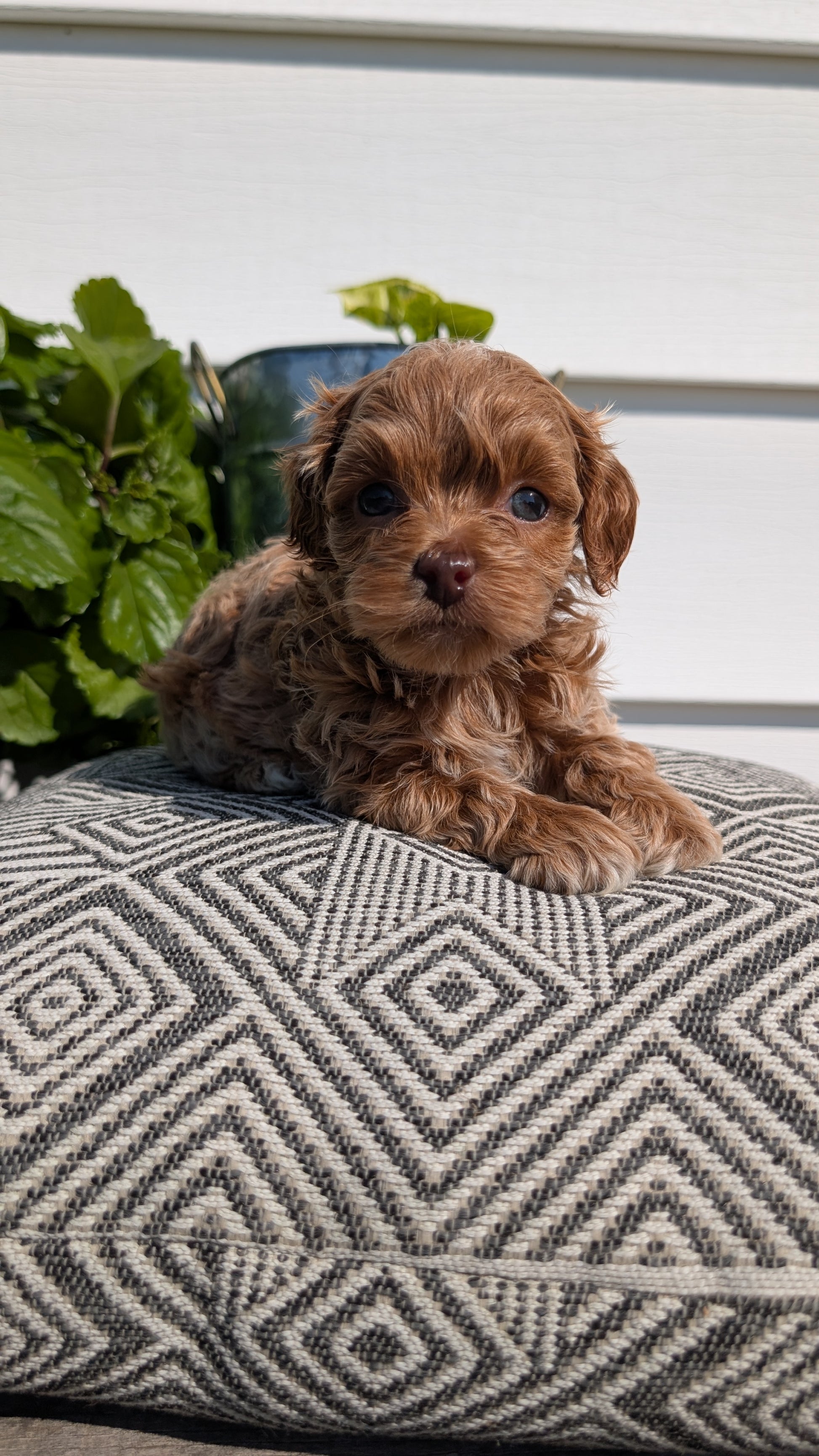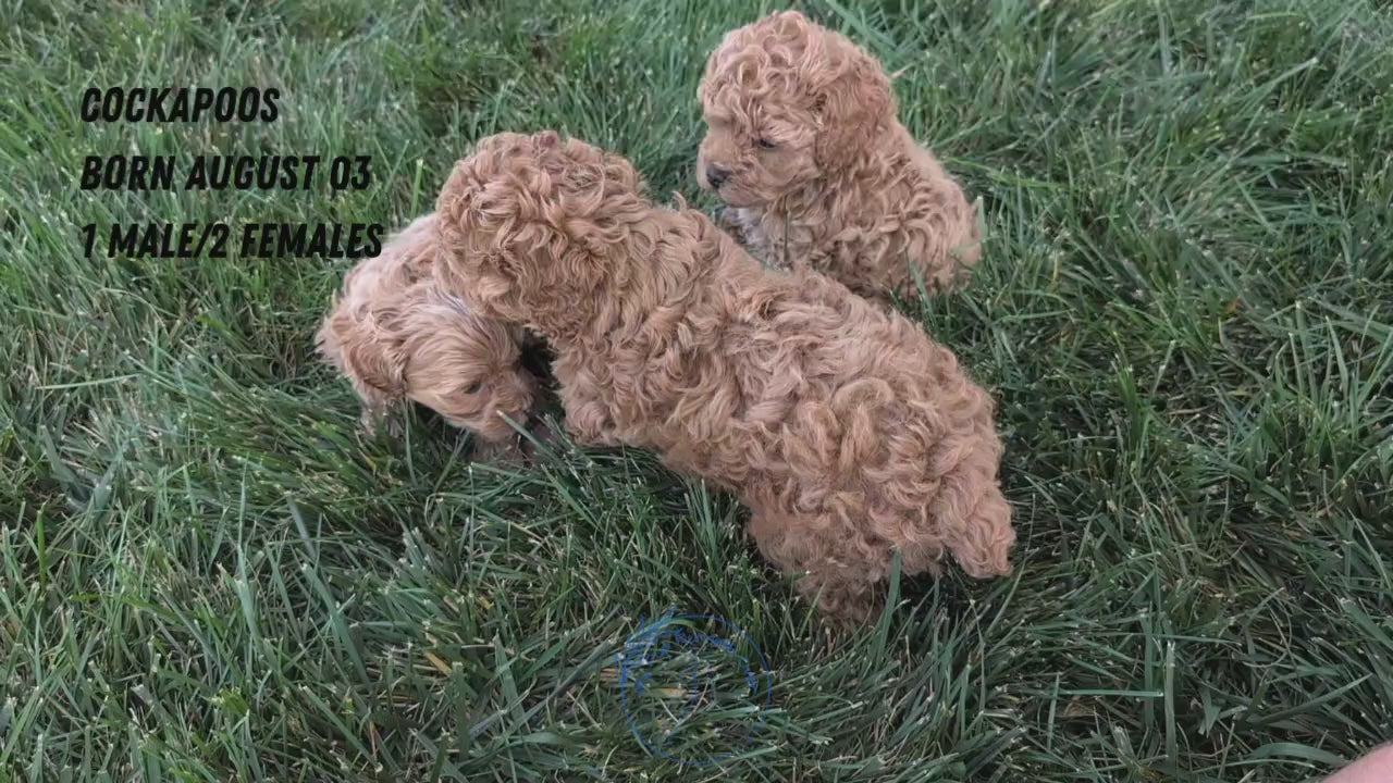 Sweet, hypoallergenic CockaPoo pups; lively and great with kids/other dogs. Very playful and well socialized; well suited to a semi-active indoor lifestyle and over 60 minutes daily activity. Mom (Lacy) is a CockaPoo weighing 12 pounds, dad (Charlie) is a 9 pound Poodle; pups expected to stand just under a foot tall full grown. Up to date on vaccinations/dewormers and will be vet checked before going to new home. In-person visits, video chat available. Local pickup in northern Indiana, public meetup and shipping/delivery available anywhere within the contiguous United States.