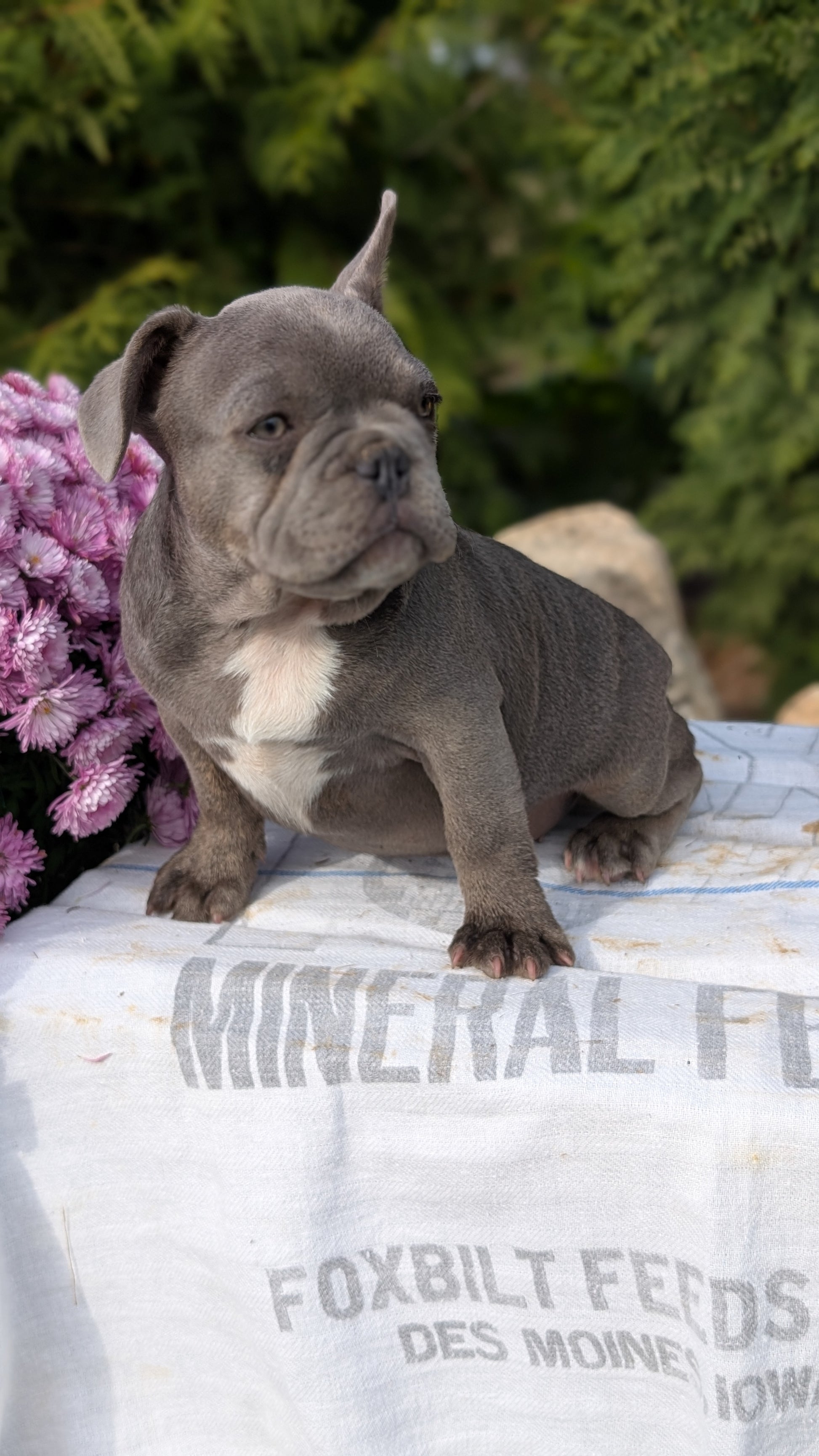 Handsome, sweet and energetic AKC French Bulldog pups; great with other dogs and kids. Love exploring outdoors and tussling; well suited to a laid back lifestyle that includes frequent socialization with other dogs. Mom (Lena) weighs 25 pounds and dad (Otis) is a 28 pound merle. Up to date on vaccinations/dewormers and vet check cleared; in person visits and video chat available. Local pickup in northern Indiana, public meetup and shipping/delivery available anywhere within the contiguous United States.