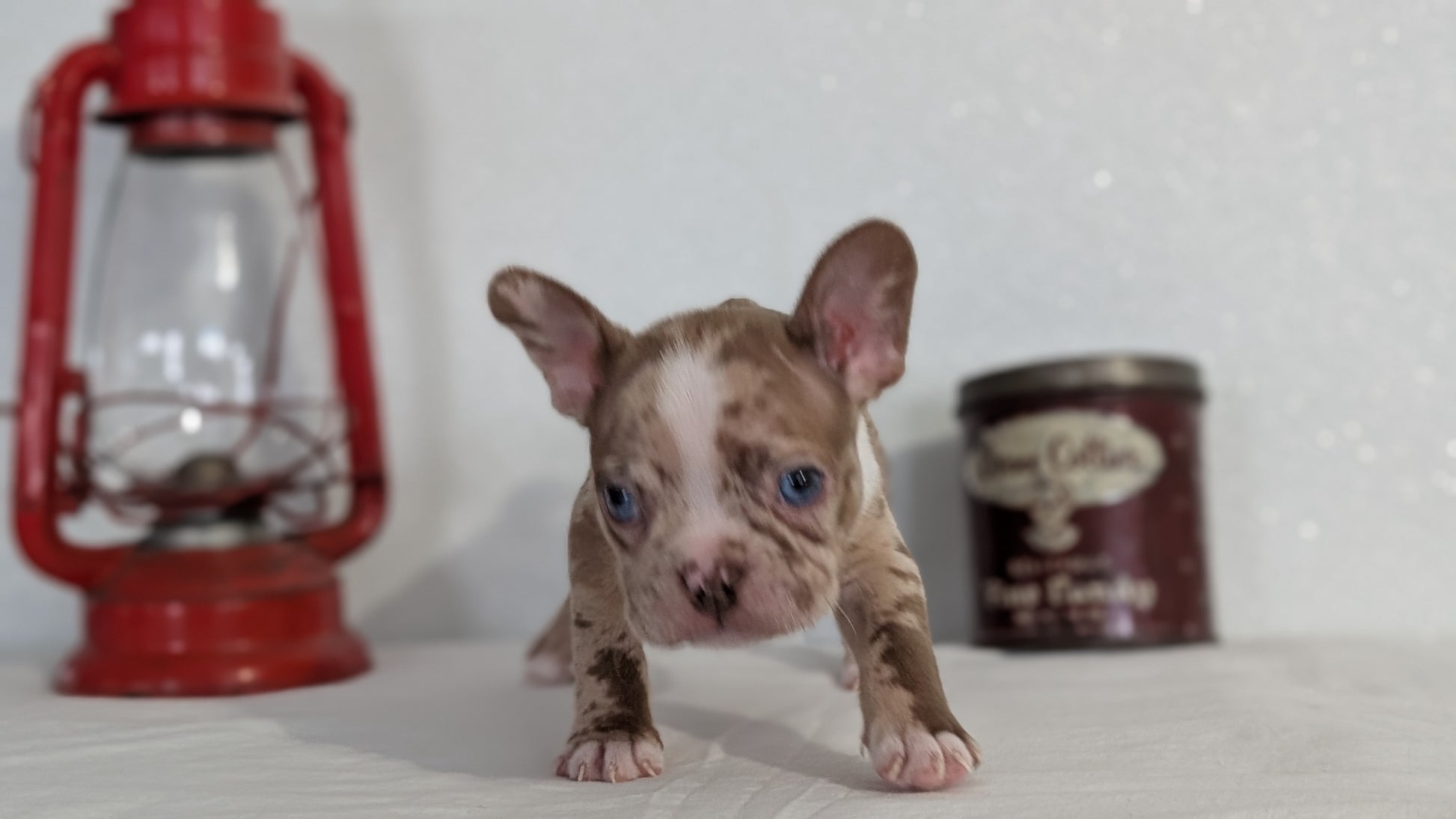 Mom (Twyla) is a seal/white Boston Terrier; AKC registered and weighing 25 lbs. Great with other dogs and kids, and a great mama. Dad (Sammyboy) is a chocolate merle 27 lb French Bulldog; very feisty and playful. Both stand 14 inches tall.
