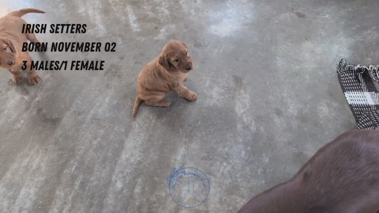 Energetic and sweet Irish Setter pups with AKC show bloodlines. Expected to be around 70 pounds full grown, great with kids and with other dogs. Well suited to an active, outdoor, sporty lifestyle; with lots of activities and mental stimulation.