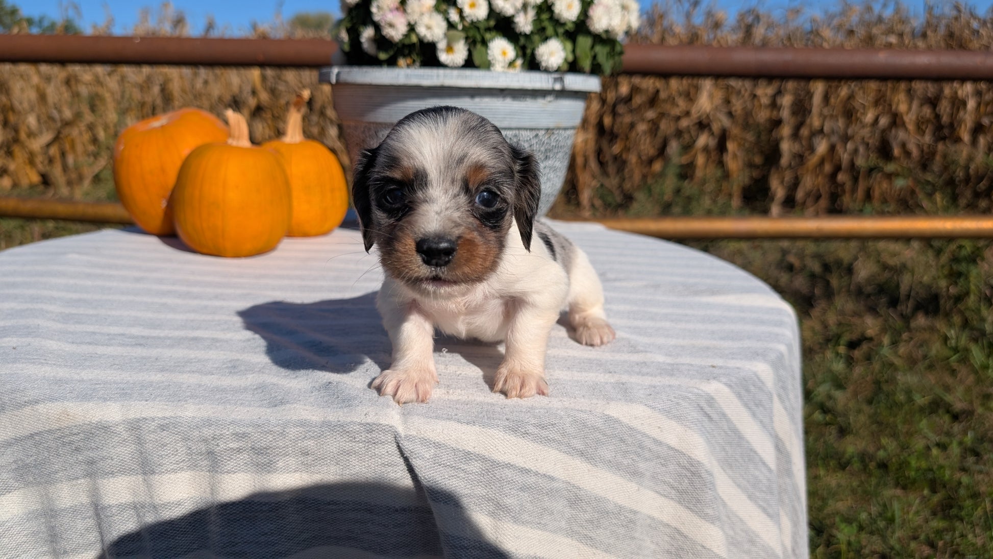 Gorgeous, tiny Mini Dachshund pups; expected to be 7-9 pounds full grown. Great with kids and other dogs, love exploring and playing outside with their mama. Well suited to an indoor, laid back lifestyle with daily walks and mental stimulation. Mom is chocolate and weighs 7 pounds, dad is black/tan and weighs 11 pounds. Up to date on vaccinations/dewormers and will be vet checked before going to new home. In-person visits, video chat available. Local pickup in northern Indiana, public meetup and shipping/delivery available anywhere within the contiguous United States.