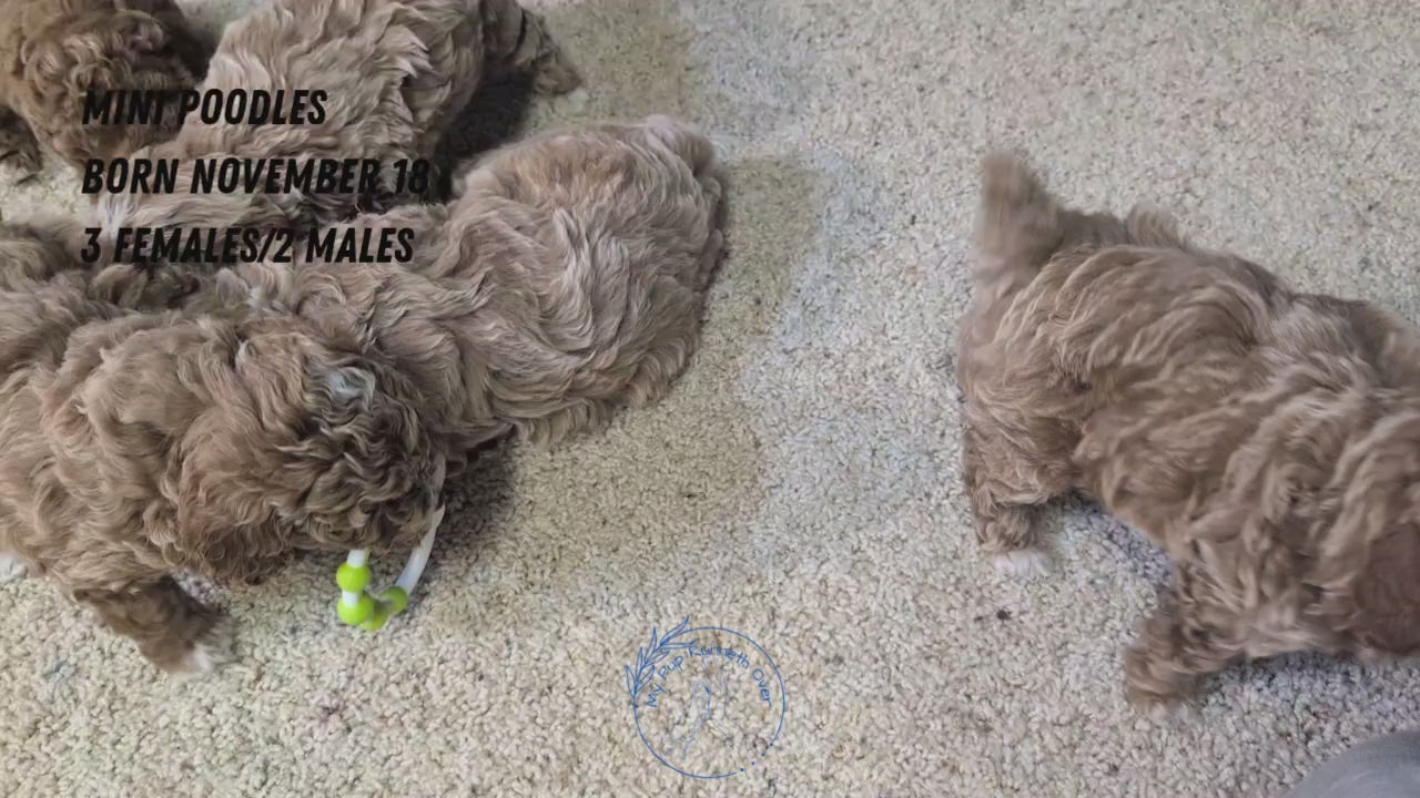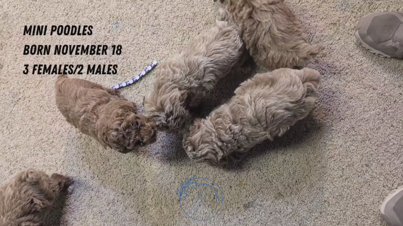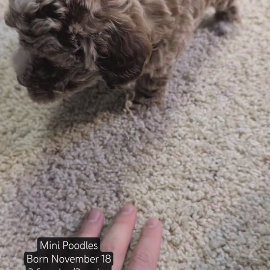 Adorable and loving Mini Poodle pups; AKC registered, hypoallergenic and non-shedding. Very sweet, great with other dogs and kids; well suited to an active, indoor lifestyle with lots of socialization and daily activities. Expected to be 14-17 pounds and 12-13 inches full grown.