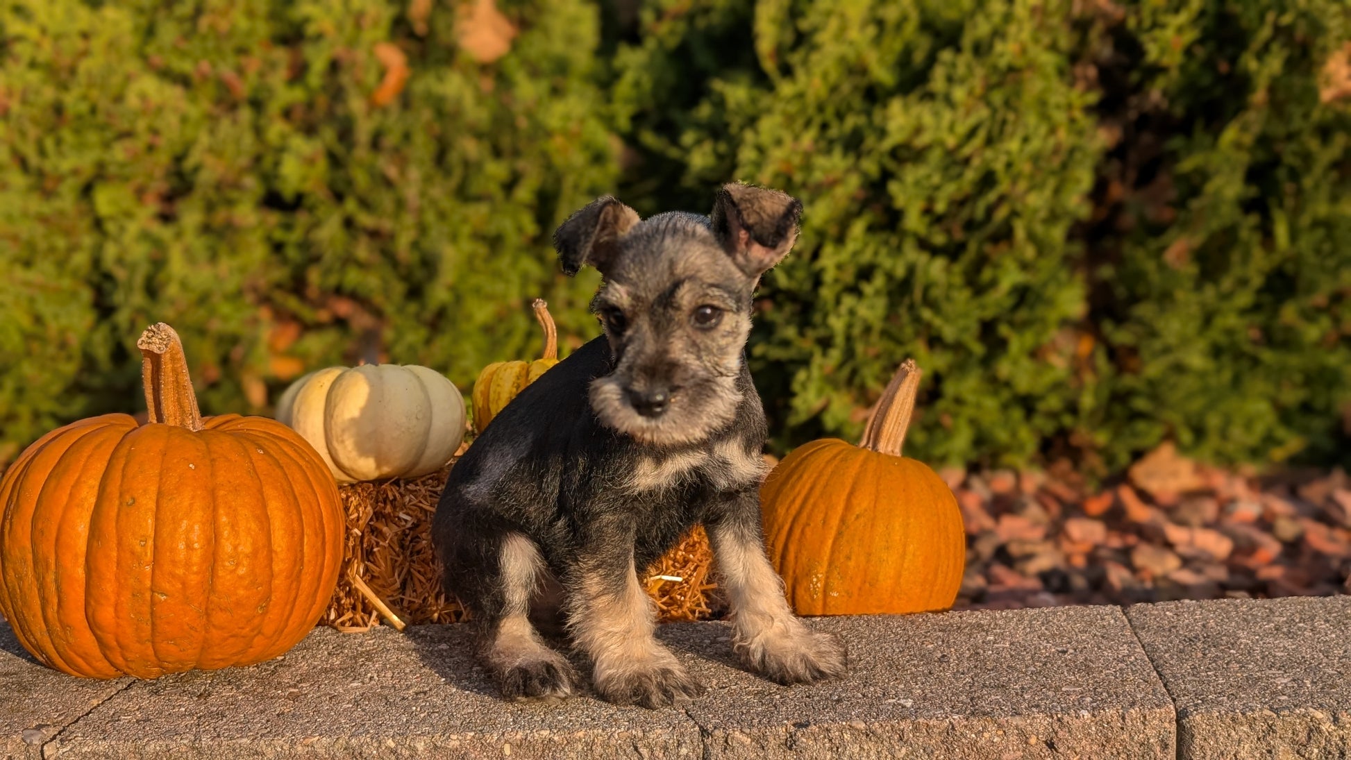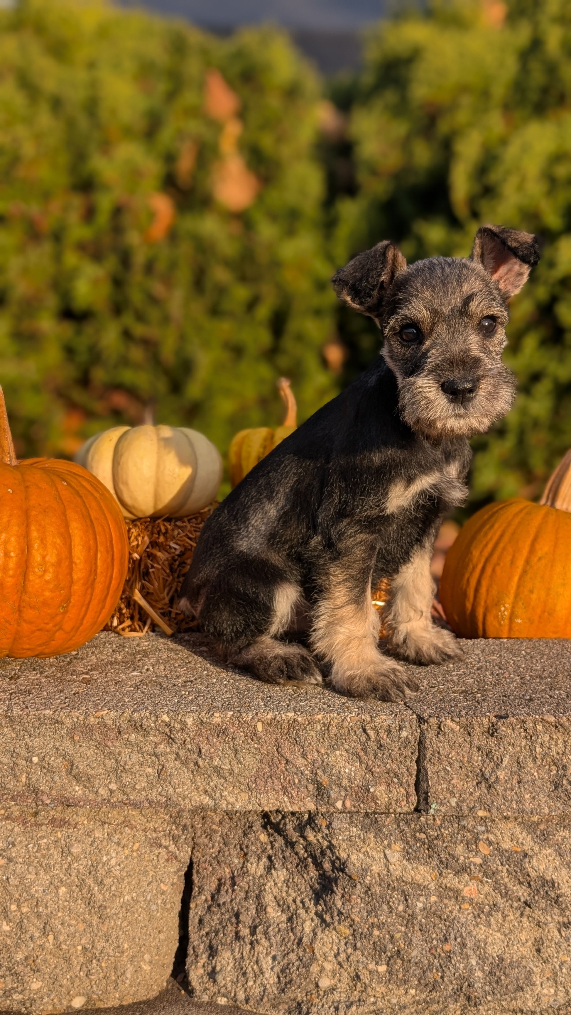 Sweet, affectionate AKC Mini Schnauzer pups; expected to be 16-18 pounds full grown. Love rolling in the grass, being cuddled and tussling with their litter mates (see videos); well suited to a semi-active, indoor/outdoor lifestyle. Mom (Sadie) is salt/pepper and 16 pounds, dad (Jasper) is black/silver phantom and 19 pounds; both are sweet, well-mannered and great with other dogs. Pups are great with kids and other dogs, up to date on vaccinations/dewormers and vet checked (results available on request). In-person visits, video chat available. Local pickup in northern Indiana, public meetup and shipping/delivery available anywhere within the contiguous United States.