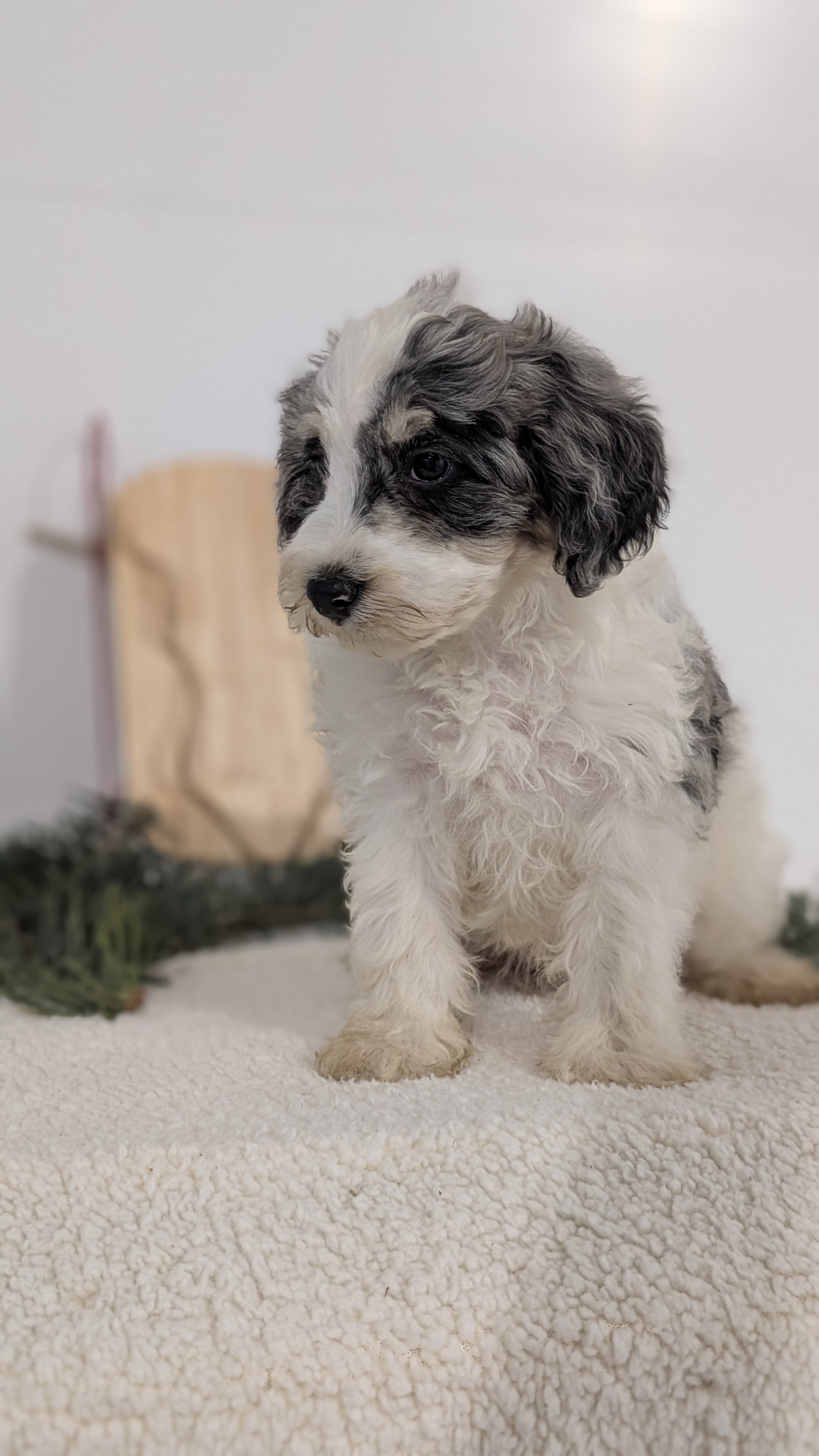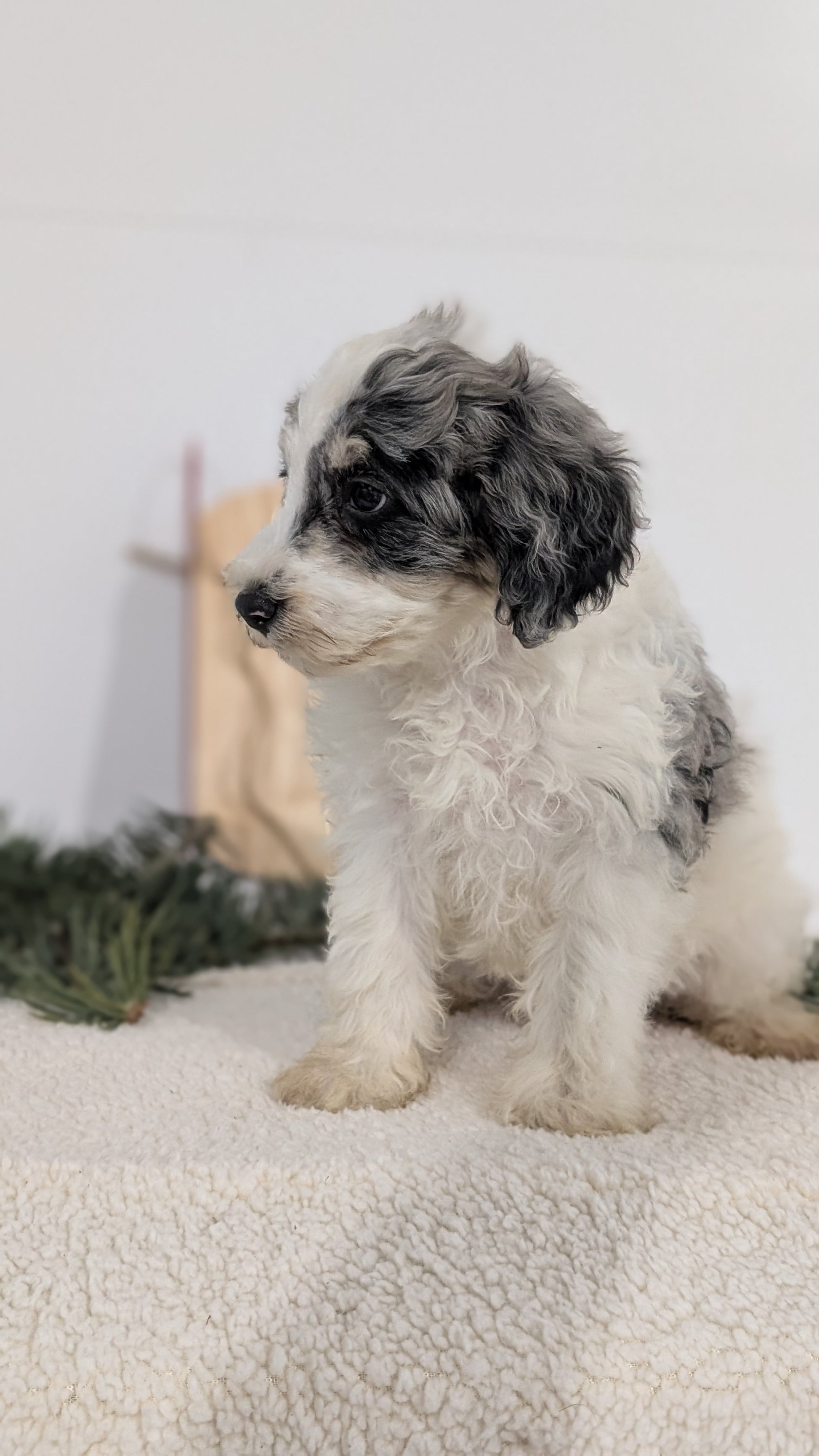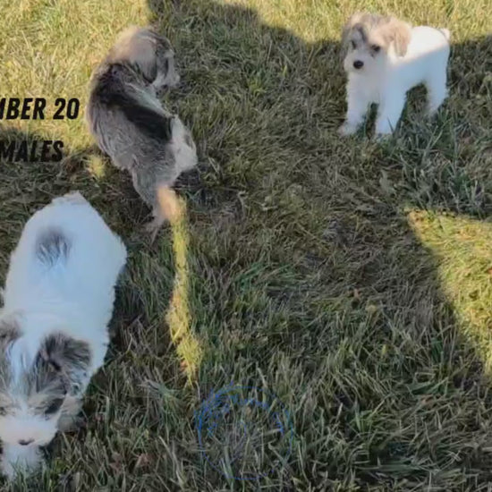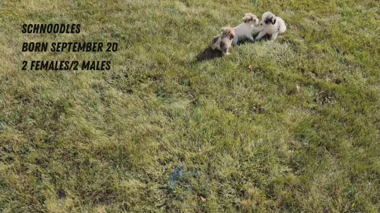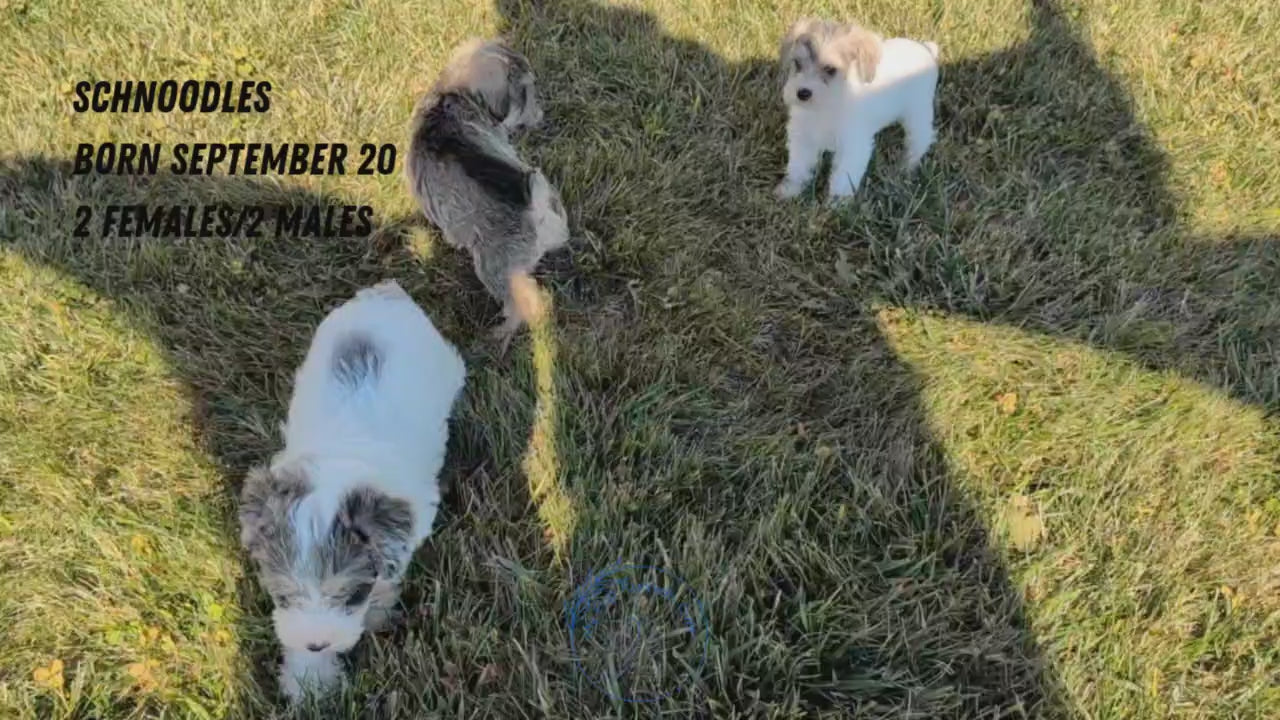 Feisty and sweet Schnoodle pups; great with kids and other dogs. Love exploring, tussling and chasing each other through the yard. Hypoallergenic, well suited to an active indoor lifestyle with daily walks and mental stimulation. Expected to be 14-16 pounds full grown. Mom (Joy) is an 18 pound Mini Schnauzer and dad (Cody) is an 8 pound Poodle; both are very well mannered and great with other dogs/kids.