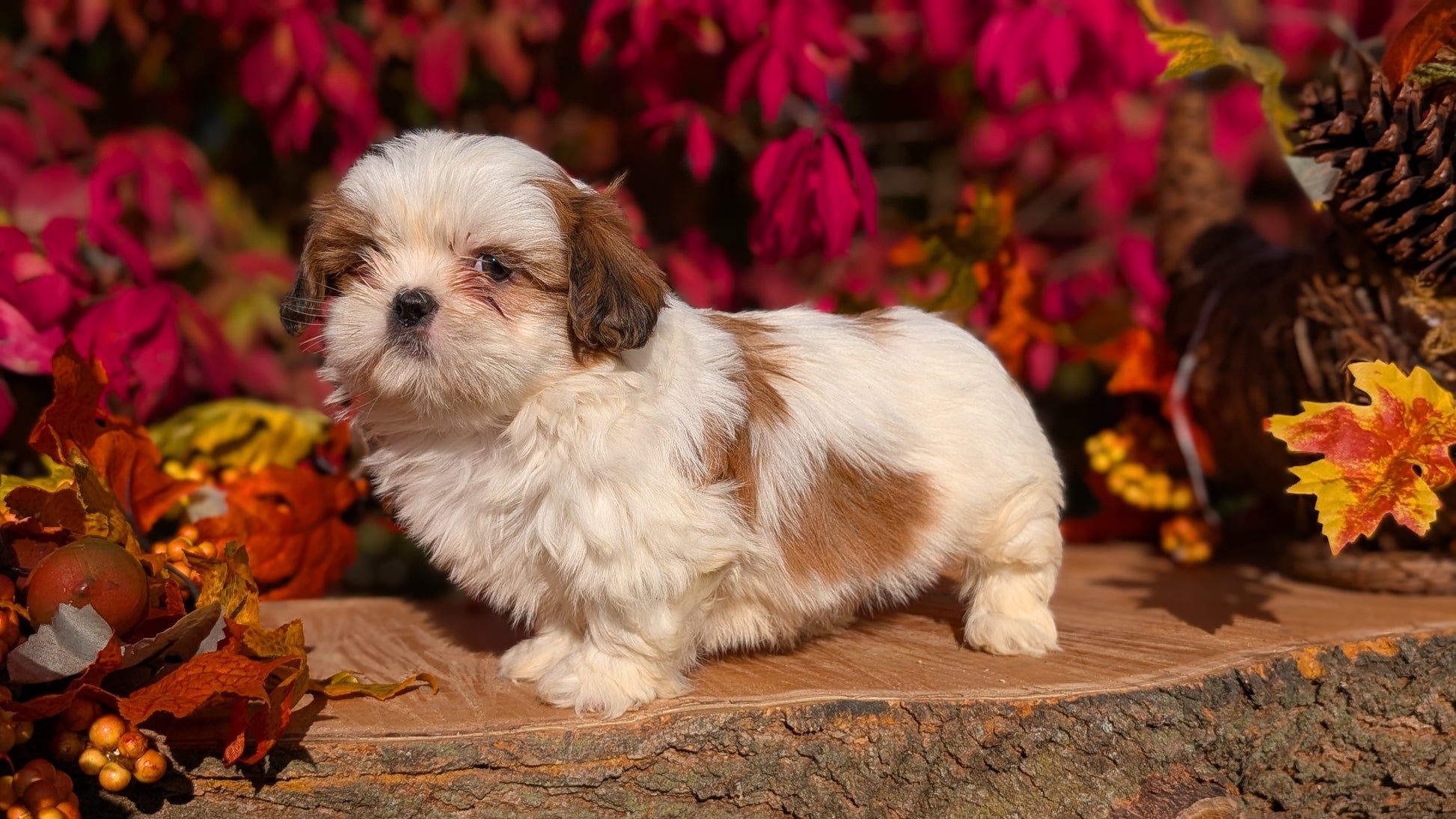 Sweet, energetic Shih Tzu pups; ACA registered and expected to be under 10 pounds full grown. Love exploring and tussling (see videos); hypoallergenic and well suited to an urban, indoor, semi-active lifestyle. Mom (Topsy) weighs 8 pounds, and dad (Lonnie) weighs 10 pounds; pups expected to stand 8 inches tall. In-person visits, video chat available. Will be up to date on vaccinations/dewormers and will be vet checked before going to new home (results linked below). Local pickup in northern Indiana, public meetup and shipping/delivery available anywhere within the contiguous United States.