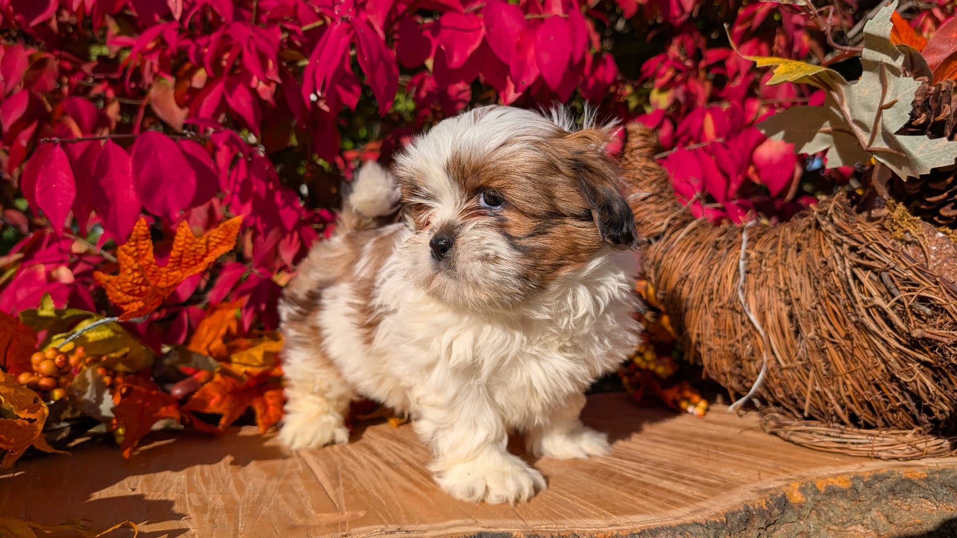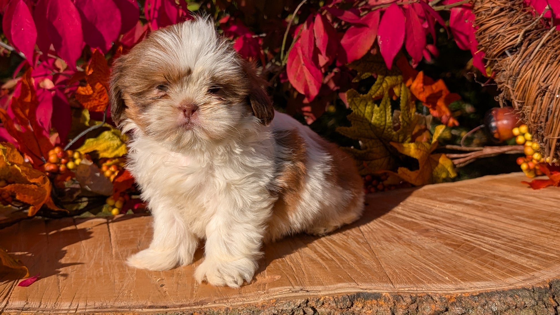 Sweet, energetic Shih Tzu pups; ACA registered and expected to be under 10 pounds full grown. Love exploring and tussling (see videos); hypoallergenic and well suited to an urban, indoor, semi-active lifestyle. Mom (Topsy) weighs 8 pounds, and dad (Lonnie) weighs 10 pounds; pups expected to stand 8 inches tall. In-person visits, video chat available. Will be up to date on vaccinations/dewormers and will be vet checked before going to new home (results linked below). Local pickup in northern Indiana, public meetup and shipping/delivery available anywhere within the contiguous United States.