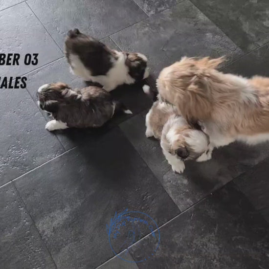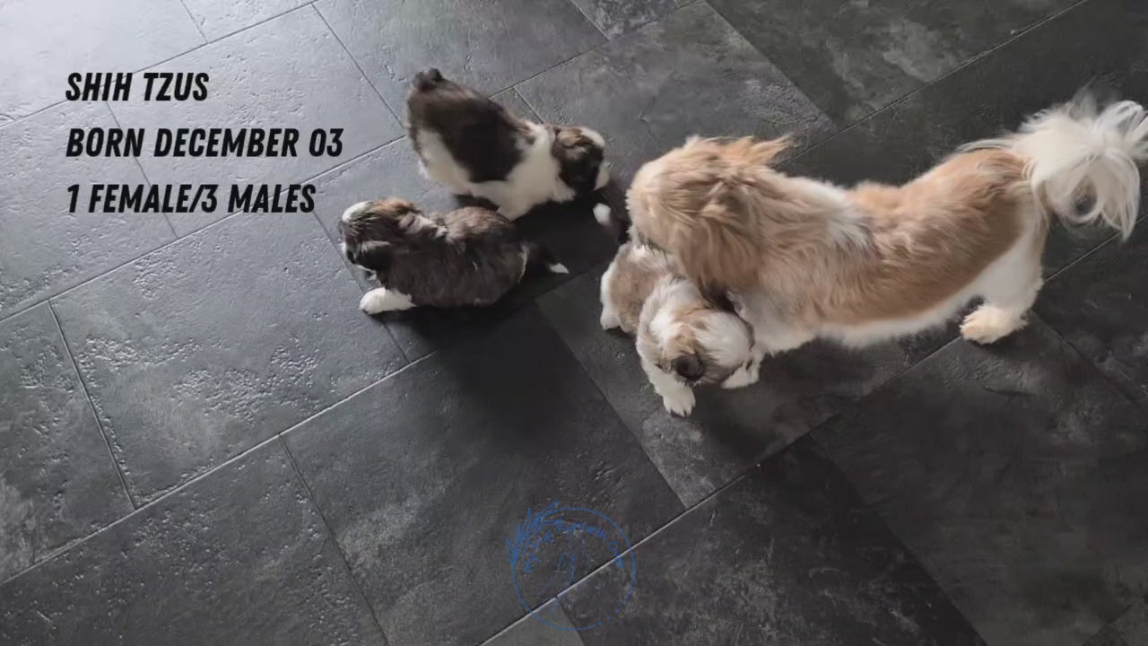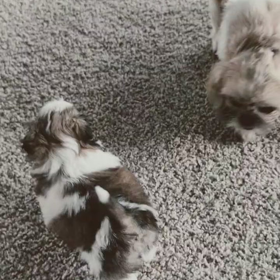 Beautiful, sweet Shih Tzu pup; toddler approved, hypoallergenic and AKC registered. Expected to be just 11-14 pounds full grown, both parents are genetic tested (results linked below). Well suited to a semi-active indoor, urban lifestyle with moderate daily activity and mental stimulation. Loves exploring, being cuddled by her favorite kiddo hooman and tussling with litter mates.