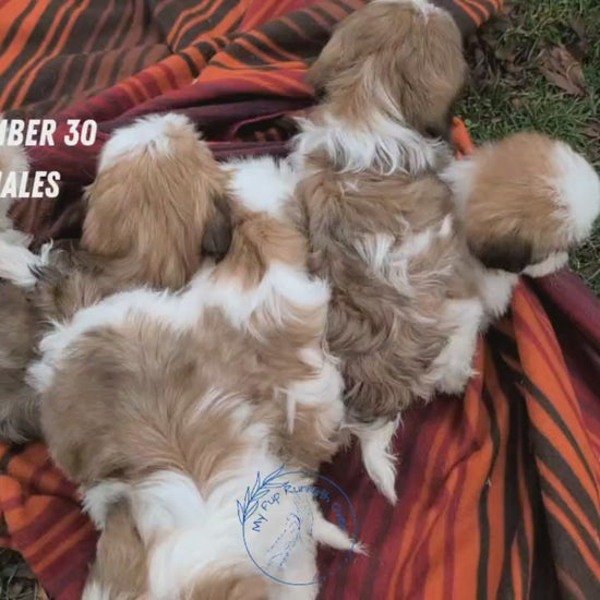 Lively, adorable Shih Tzu pups; ACA registered and expected to be 9-11 pounds full grown. Love exploring, tussling and causing mischief. Hypoallergenic, well suited to a semi-active, indoor lifestyle with daily walks and lots of socialization.